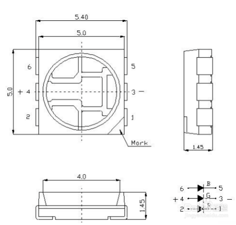1、5050RGB貼片LED燈珠是5mm*5mm*1.6mm,光強(qiáng)高(純白光,暖光的稍微小一點(diǎn))。它的工作電壓和普通的LED一樣,只需要3.0-3.4V,電流也是一樣60MA。