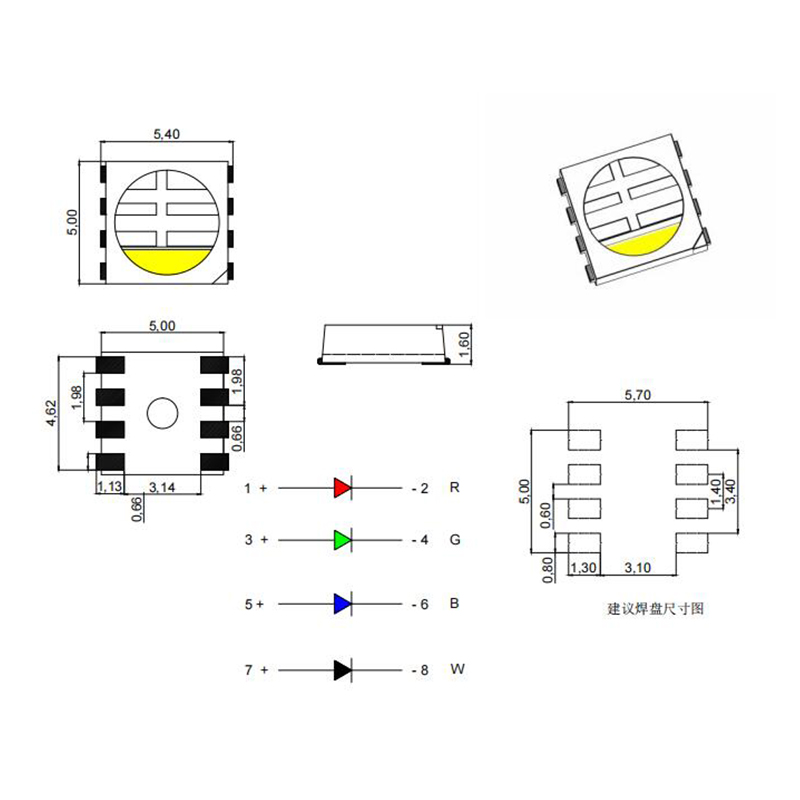 5050RGBW四合一燈珠的優(yōu)點(diǎn)不僅僅在于其多彩豐富的照明效果,它還擁有更高的亮度和更高的能效比。5050RGBW四合一燈珠
